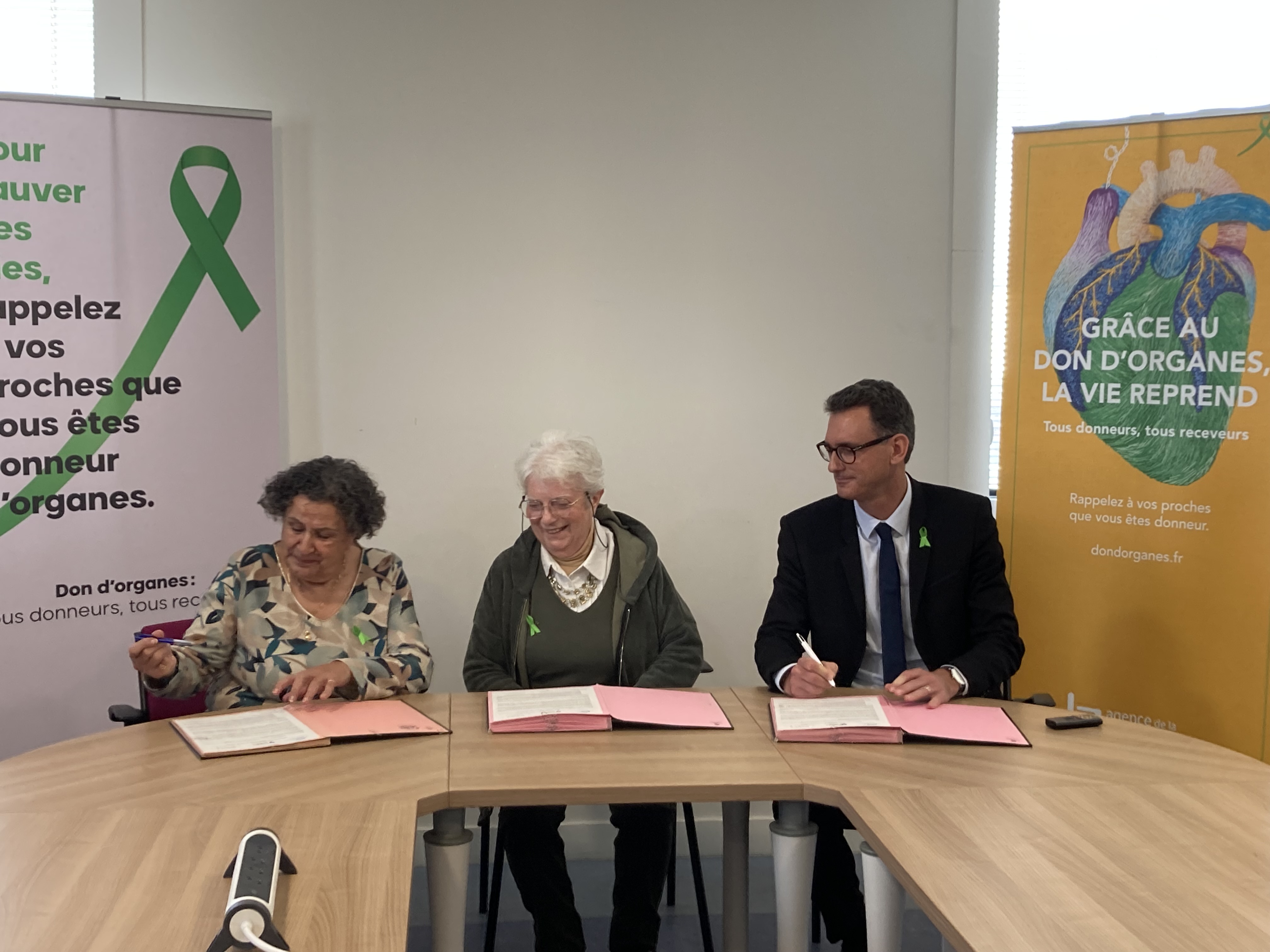 Le directeur de l’hôpital Sainte-Musse à Toulon, Yann Le Bras a signé vendredi 7 novembre la charte des Ambassadeurs du don d’organes, avec le Collectif Greffes+, représenté par Marie Georges, présidente de l’association France ADOT 83, et Anne-Marie Nicolle, déléguée de l’association Vaincre la Mucoviscidose.