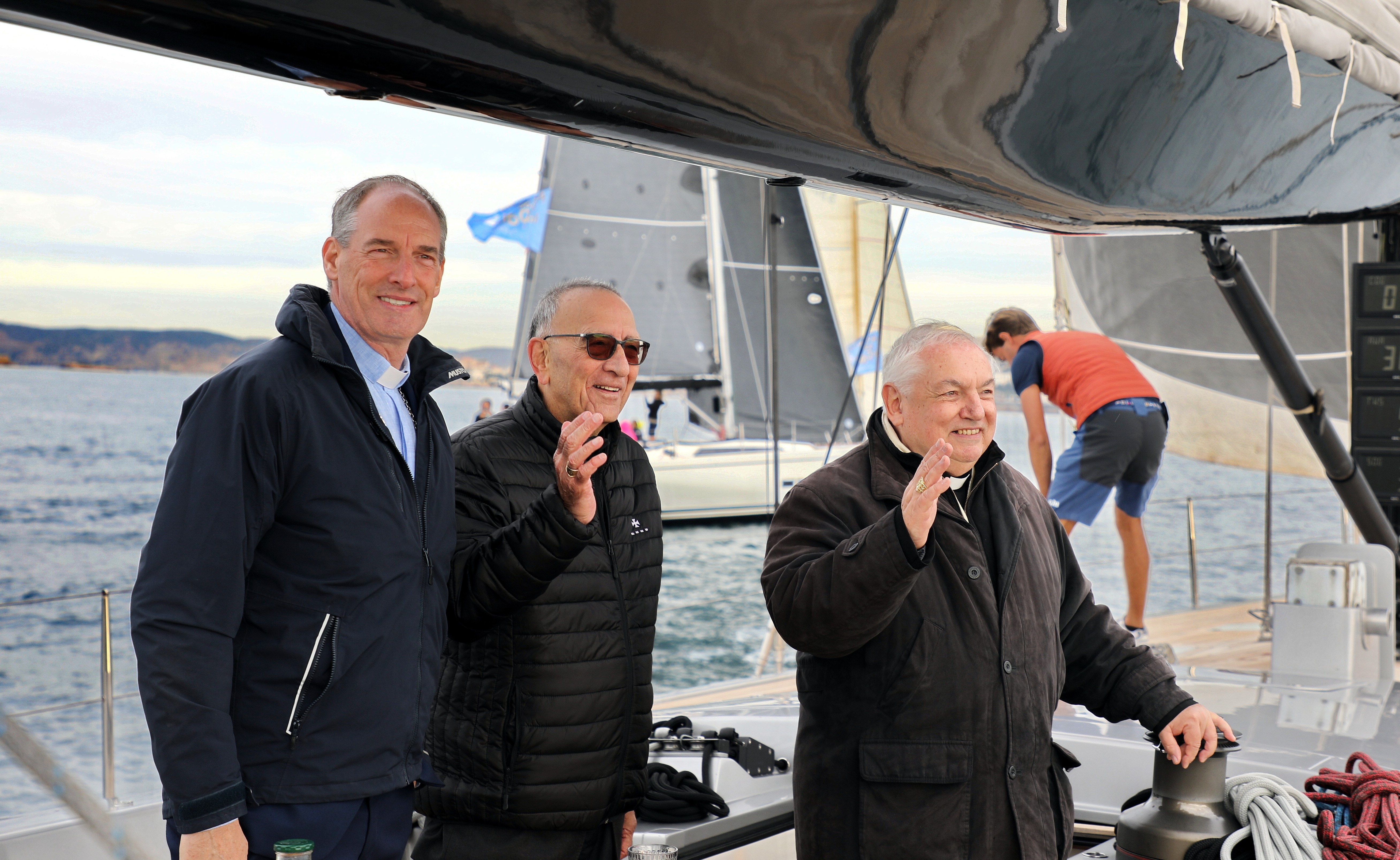 Dimanche matin, à Marseille, le cardinal de Marseille, le cardinal Jean Marc Aveline, Juan Josep Omella, archevêque de Barcelone et François-Xavier Bustillo Rípodas, évêque d’Ajaccio sont montés à bord du Bel Espoir pour accueillir l’équipage de jeunes venus de divers pays méditerranéens. ©Alain Robert Le Méridional