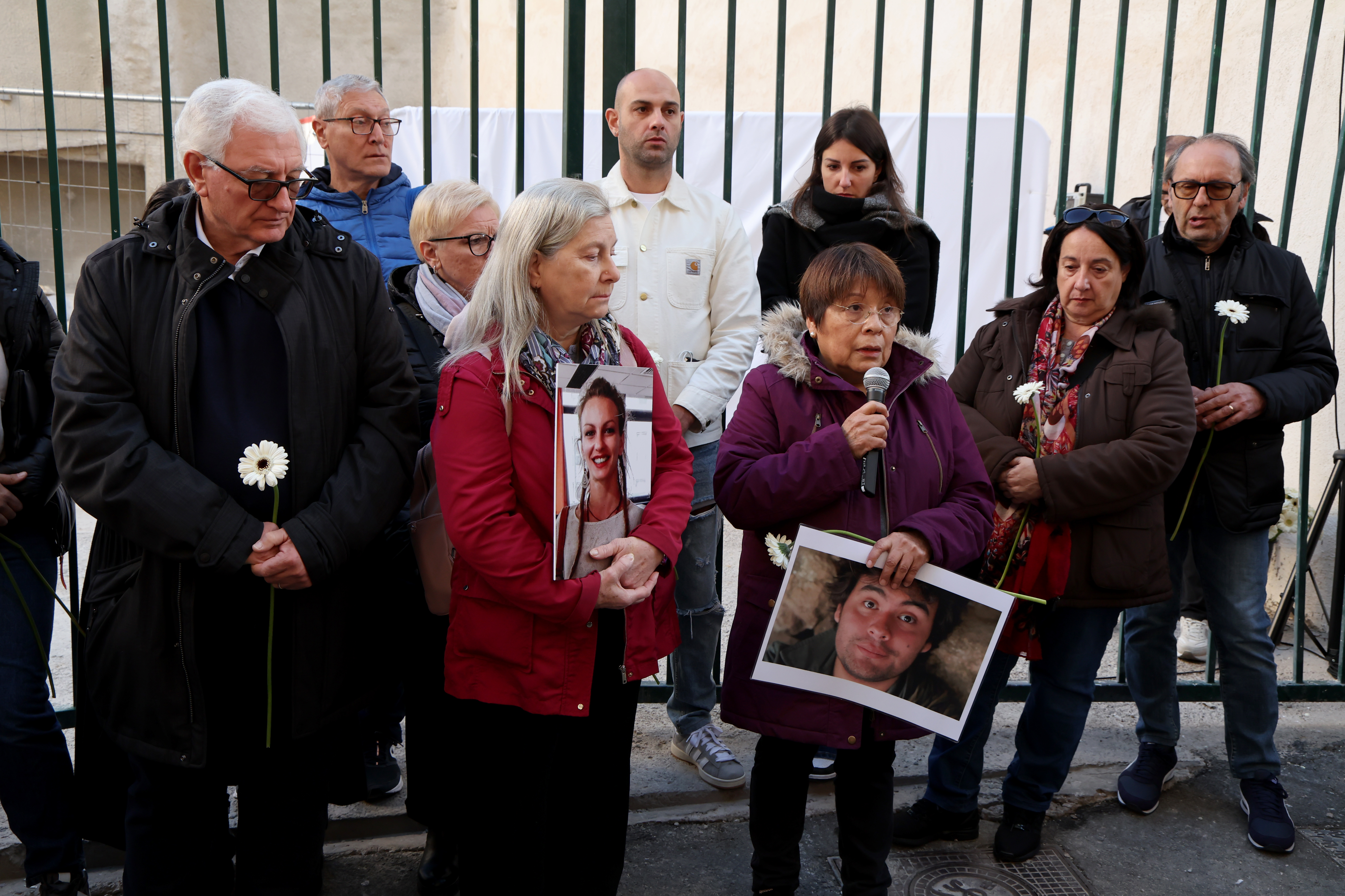 Au premier plan, les parents de Simona Carpignano et Julien Lalonde qui ont pris la parole ce mercredi matin. ©Alain Robert-Le Méridional