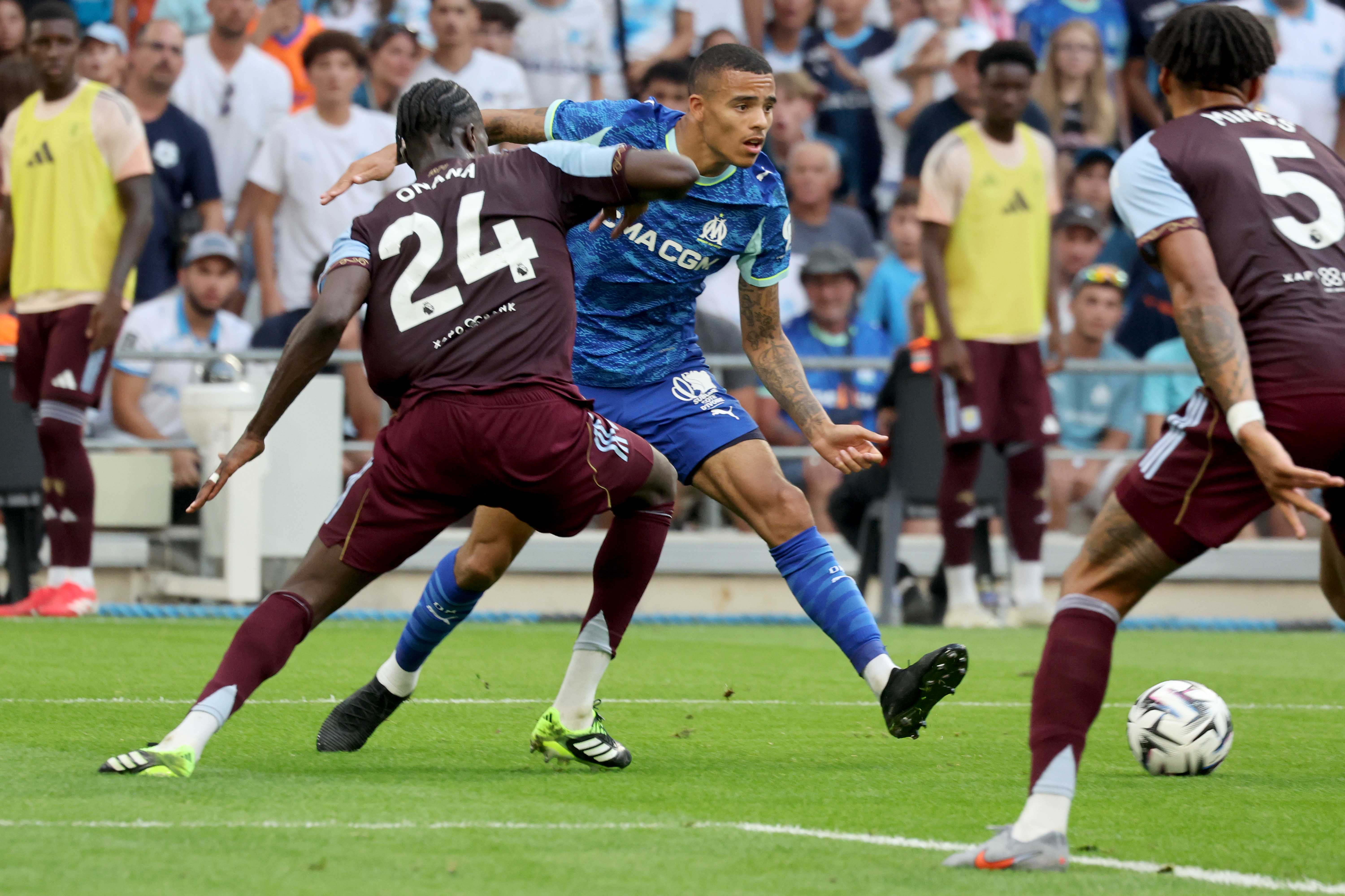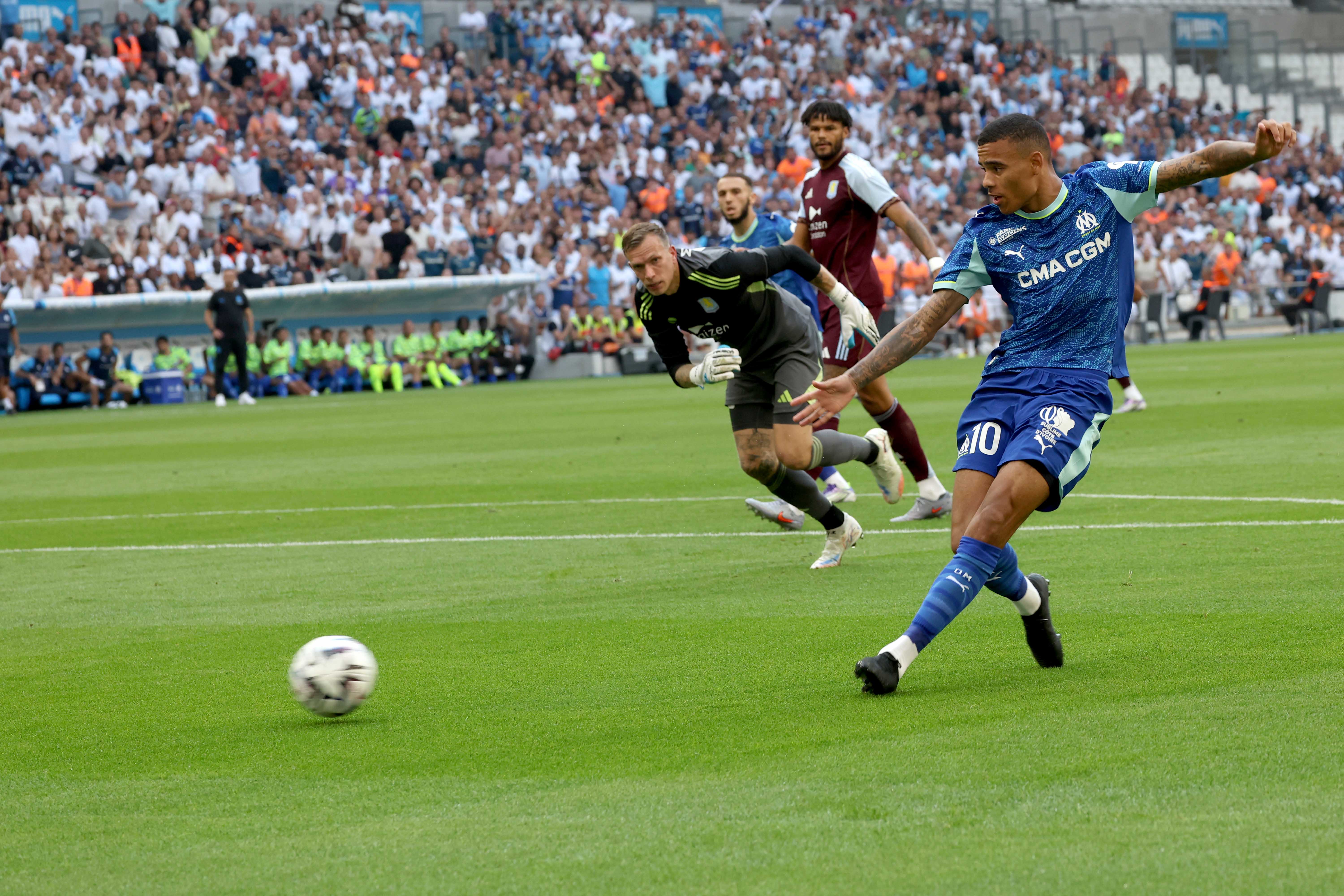 Sous la chaleur estivale, l’OM entame la rencontre avec intensité et application. Dès la 2e minute, Gouiri se signale par une frappe dangereuse, puis Greenwood, déjà très actif, ouvre le score à la 5e minute : lancé par une longue ouverture d’Hojbjerg, il profite d’une énorme erreur de Mings pour éliminer Bizot et pousser le ballon dans les filets (1-0). Mais la joie est de courte durée. Trois minutes plus tard, McGinn régale les siens d’un piqué inspiré pour lober Rulli et ramener Aston Villa à hauteur (1-1), malgré de vives protestations marseillaises pour un hors-jeu apparent, non sanctionné faute d’assistance vidéo.