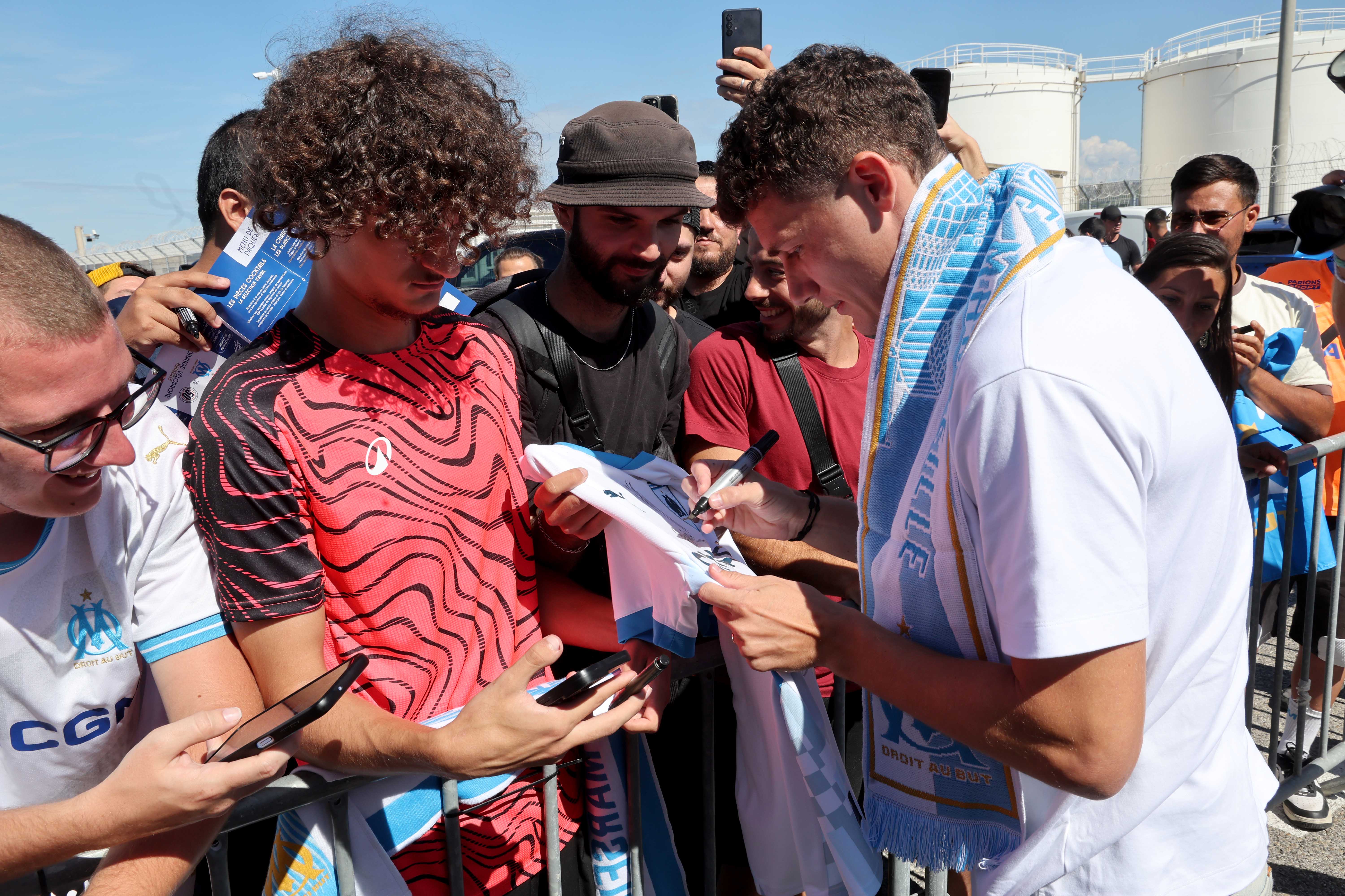 À son arrivée à l’aéroport de Marignane, l’international tricolore a été accueilli par des dizaines de supporters marseillais malgré un contexte perturbé par la grève générale qui touche tout le pays. Benjamin Pavard a pris le temps de dédicacer quelques maillots, de serrer des mains et de répondre aux questions des journalistes avant de rejoindre le centre d’entraînement de l’OM.